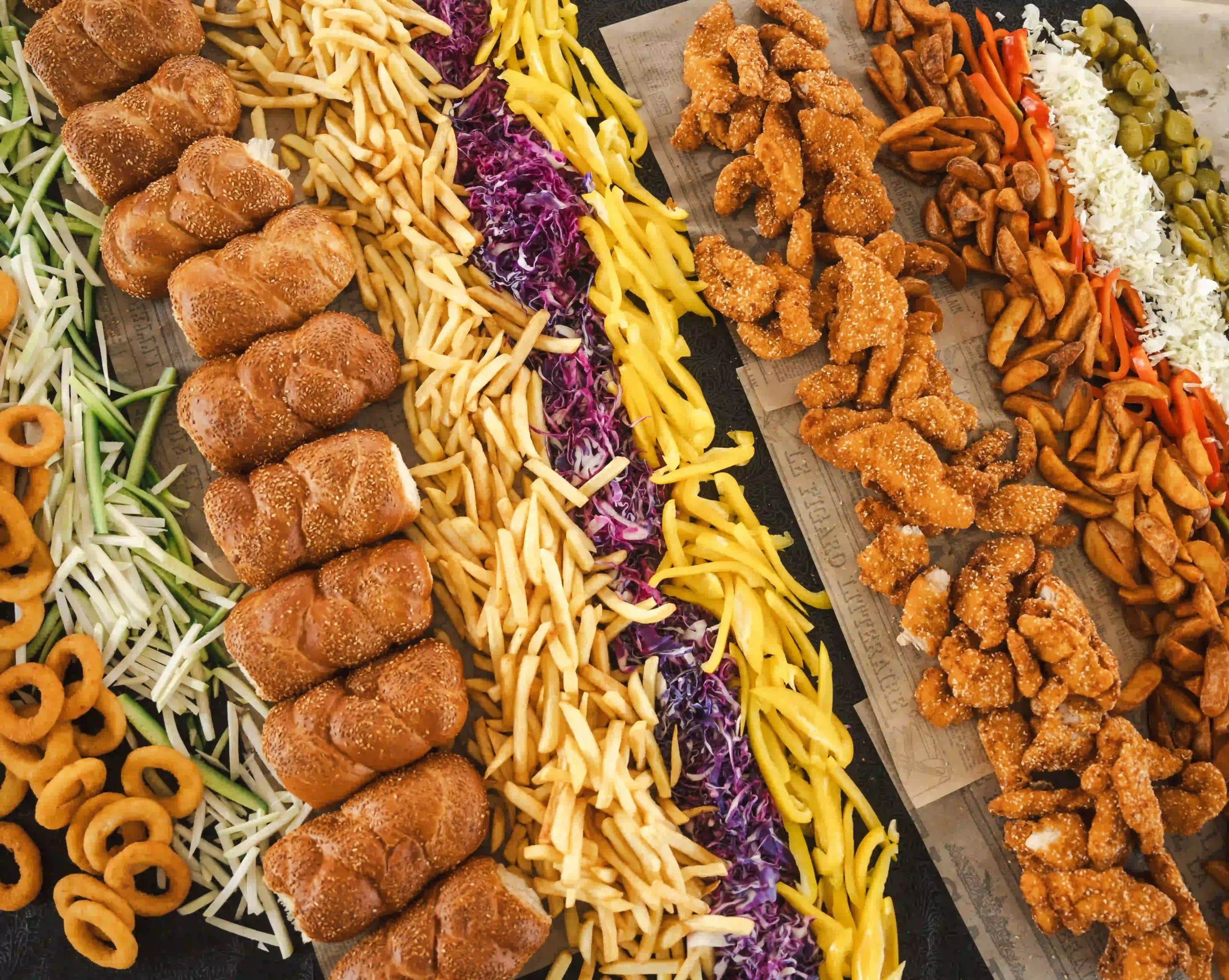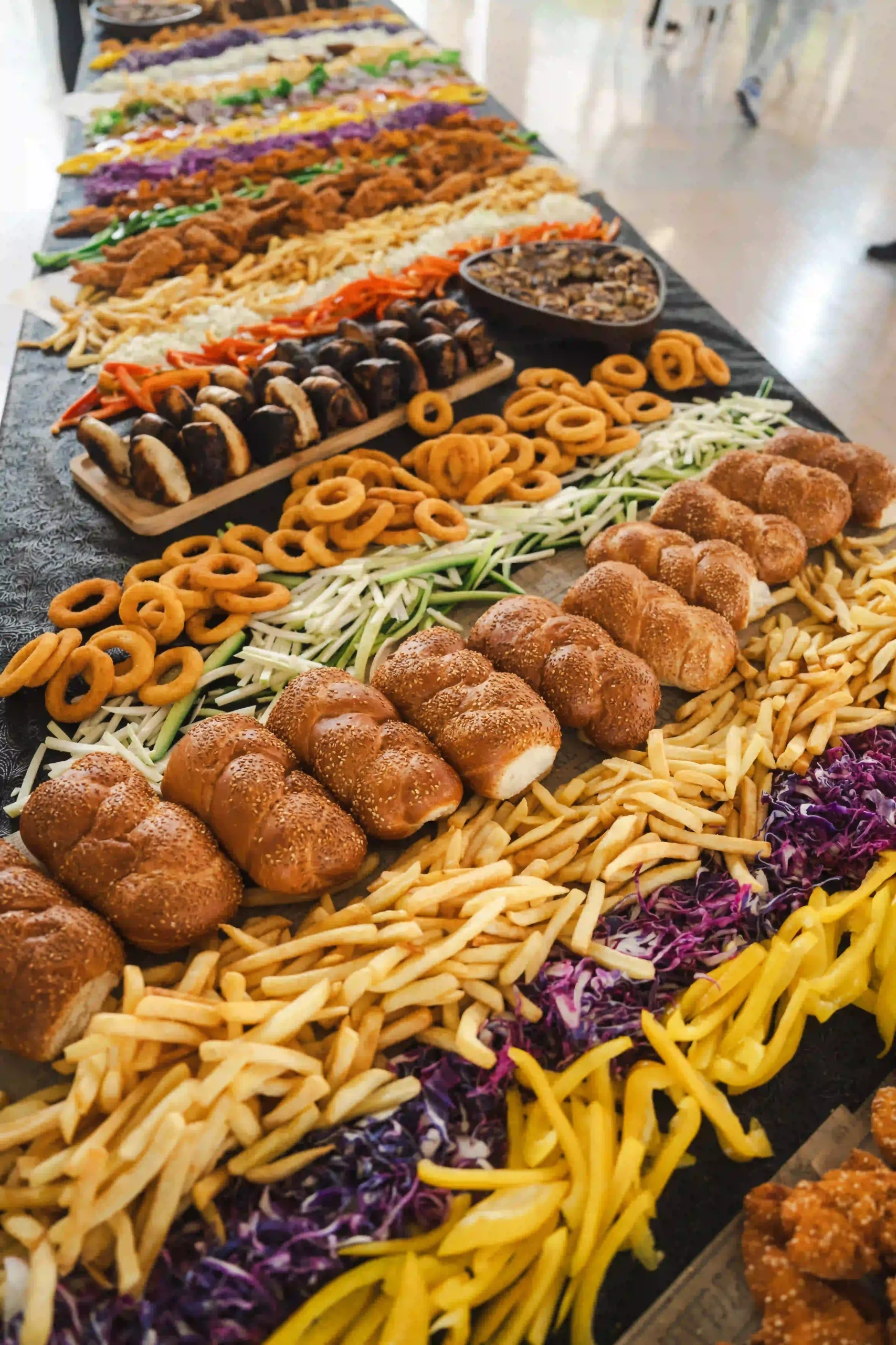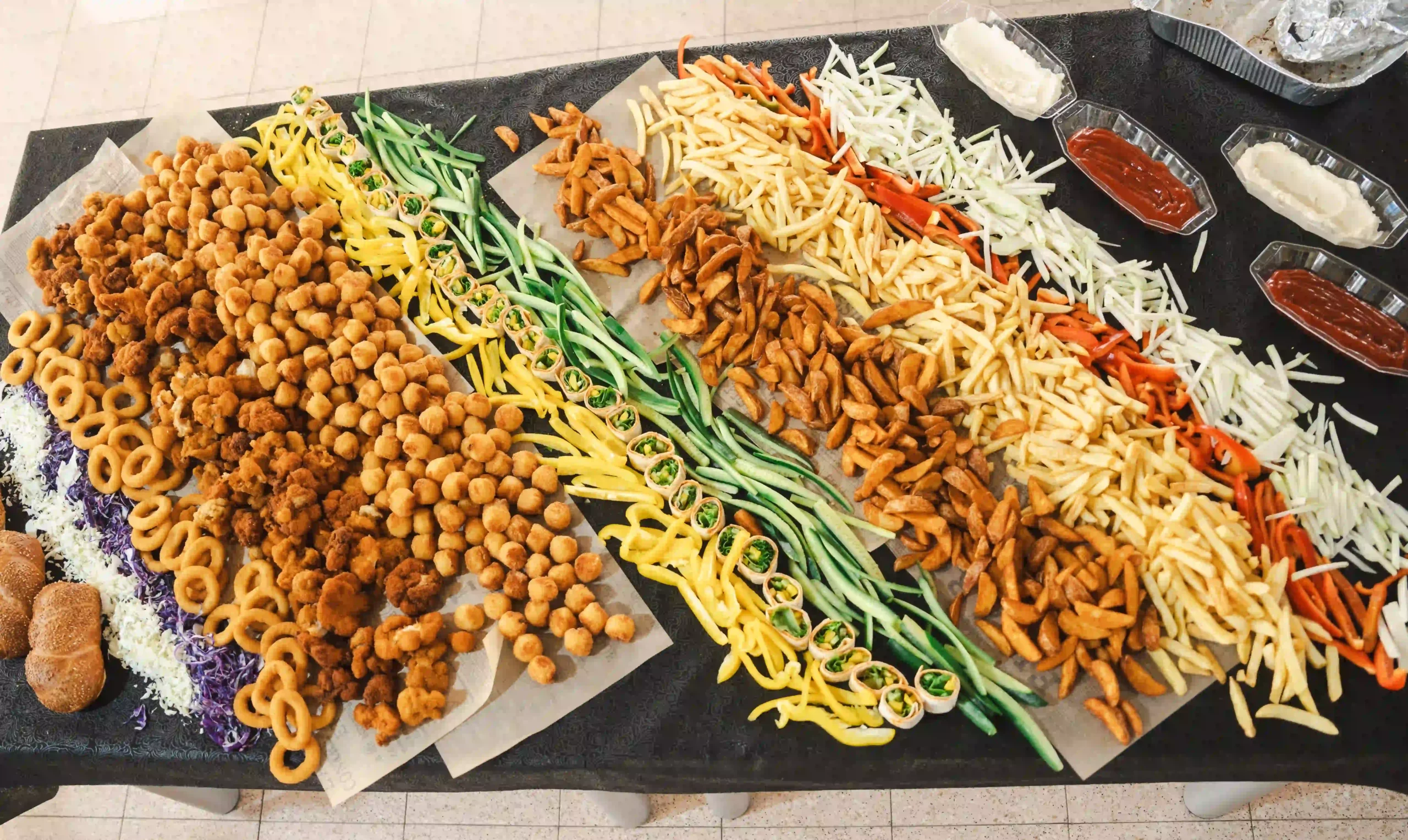 - שולחנות נושא – שולחן המבורגרים, שניצלונים, פלאפל או מטוגנים – פתרון מושלם למסיבות צעירות ולילדים.